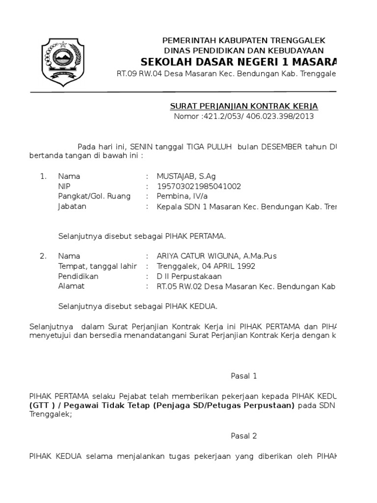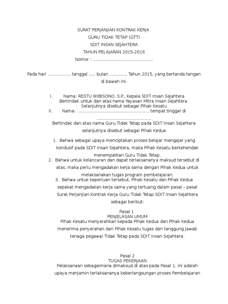 Contoh Surat Perjanjian Kontrak Kerja Gtt Ptt 2015 Pdf